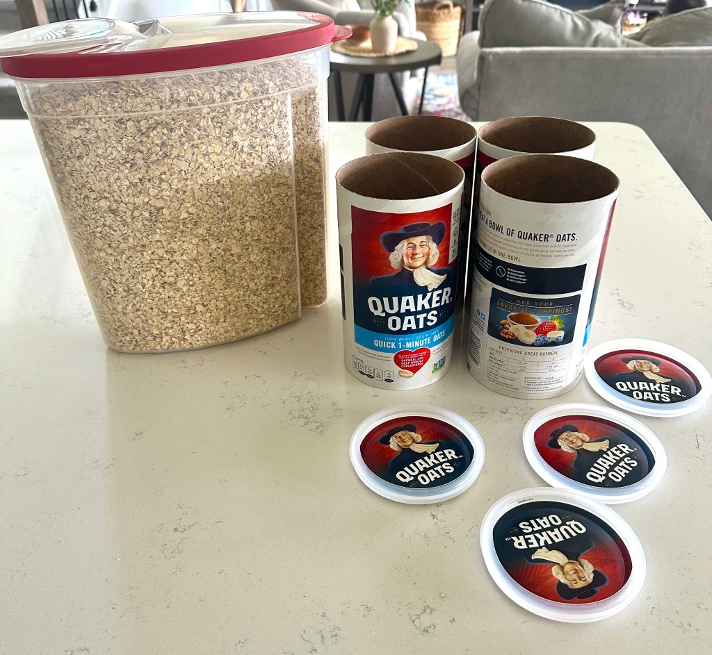 1. Empty out your oatmeal canisters and enjoy oatmeal for breakfast all year long! :D2. Trace around your oatmeal canister onto a scrap of black foam board. Cut the circle out. (After you cut it out, see if it fits in the canister opening. if not, trim it down a bit more.)