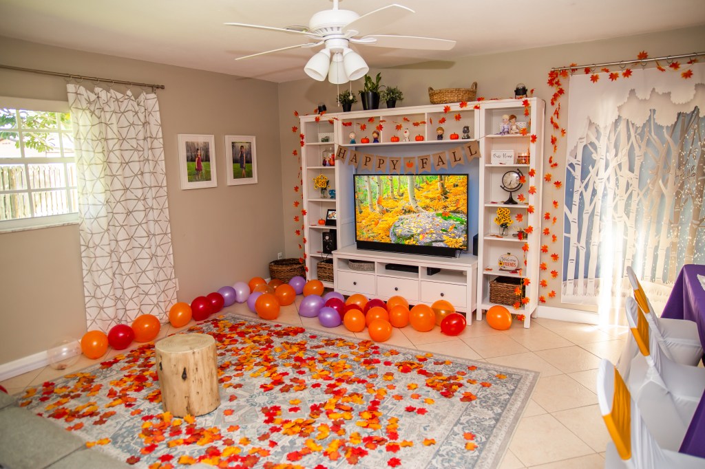 When my daughter Elsa (yes, Elsa!) turned six, I wanted her celebration to reflect the warm, foresty tones of Frozen 2—not the icy blues of the original movie. I envisioned swirling leaves, cozy treats, rich autumn colors, and just the right touch of Arendelle magic. Now, full disclosure: we live in Florida, and her birthday is in August. So while this may look like a crisp fall tea party, the reality outside was 100 degrees with 100% humidity. The leaves weren’t changing… unless you count the silk ones I dumped all over the living room floor. But sometimes, when summer feels never-ending, you just need to crank the AC, pour some hot tea, and pretend it’s sweater weather. This party became our cozy, magical escape—and the ultimate fall fantasy, minus the actual cold front.
