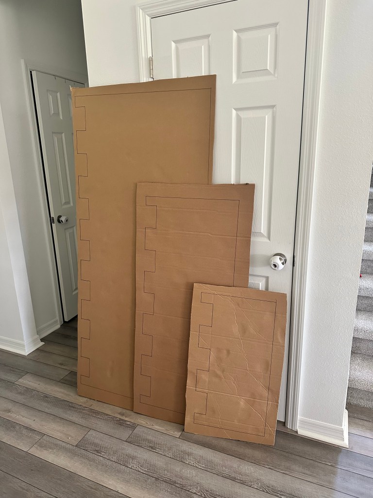 I wasn’t sure how I was going to make the castle when I started, so the entire thing was made up as I went. I began by taking my huge pile of assorted Amazon cardboard and reducing it down to 3 large rectangles. I figured I could turn each rectangle into a level of the castle.