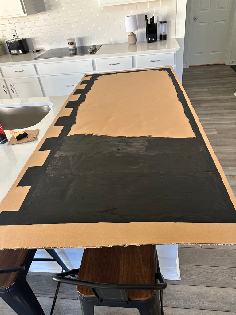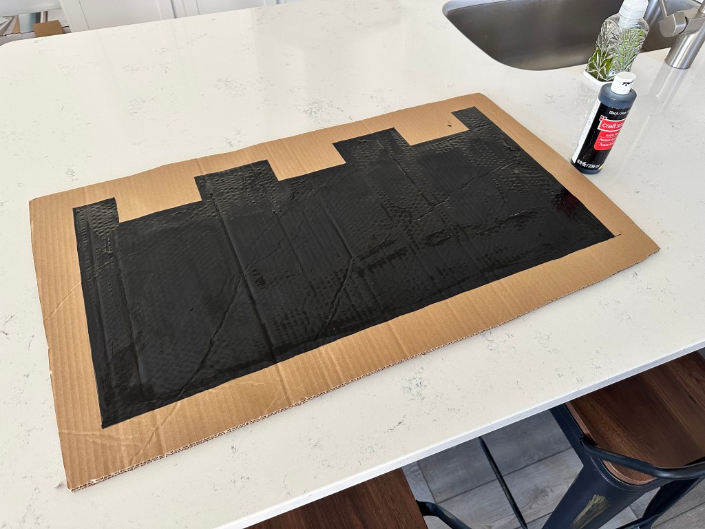 Then I painted all three castle sections with black acrylic paint. It took quite a bit of paint—the bottom level is over five feet wide—so plan accordingly.