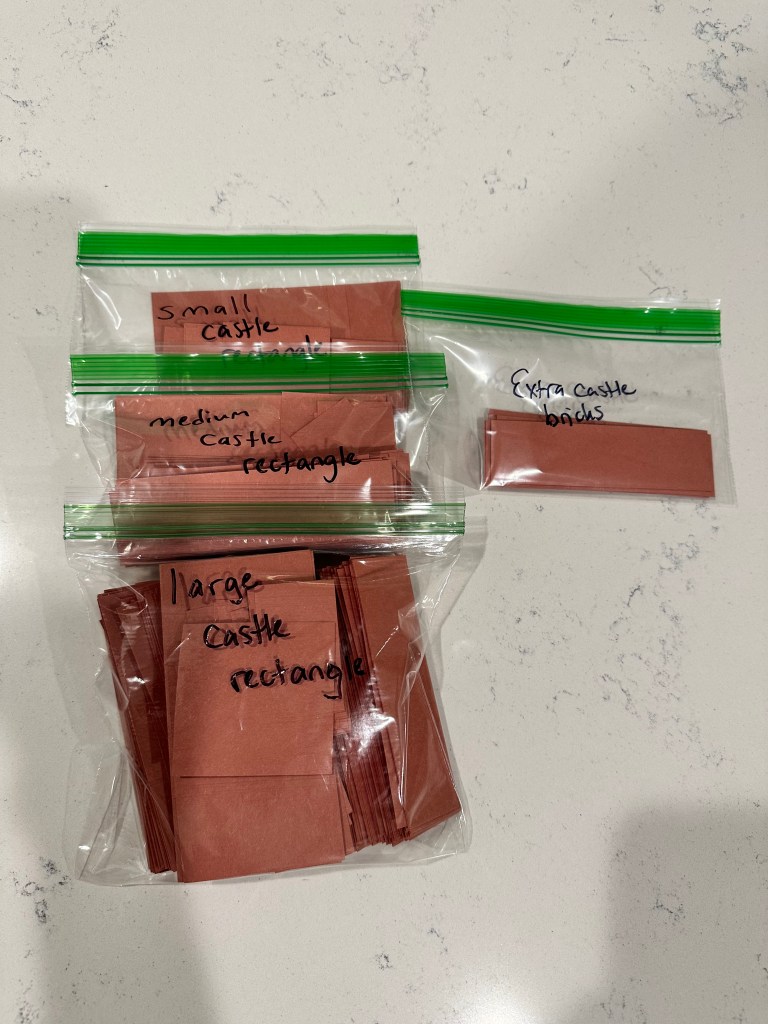 To stay organized, I sorted the bricks into ziplock bags by section—a totally optional step, but it helped a lot when it came time to glue.